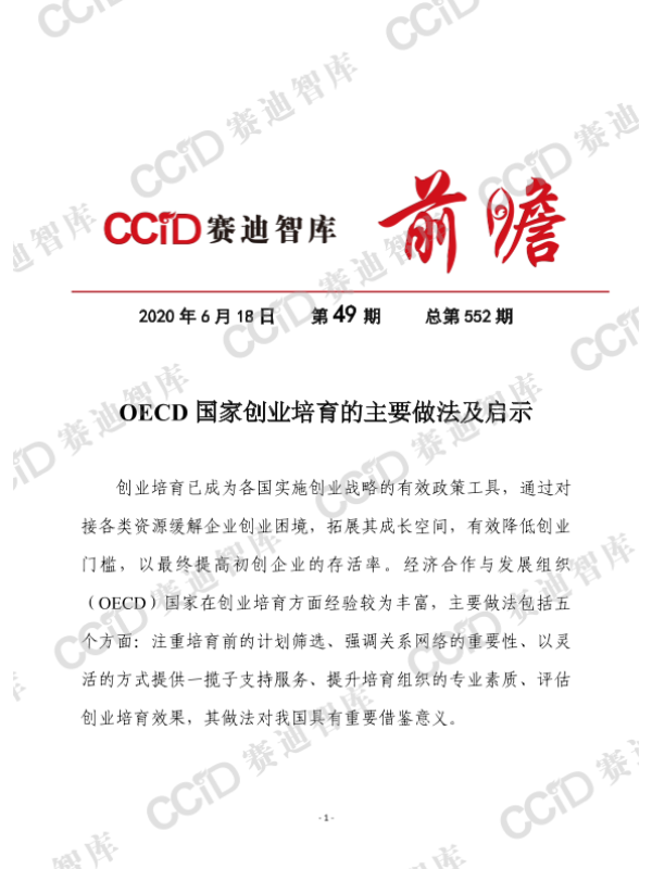 【经济合作与发展组织 (OECD)】【20200618】OECD国家创业培育的主要做法及启示-12页 行业研究