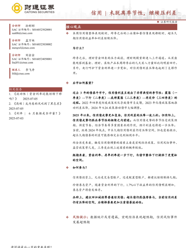 【财通证券】【20250706】信用|未脱离季节性,继续压利差-27页 证券期货研究报告
