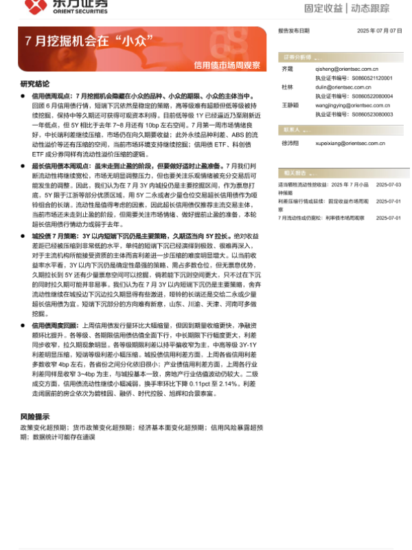 【东方证券】【20250707】信用债市场周观察_7月挖掘机会在_小众-12页 证券期货研究报告