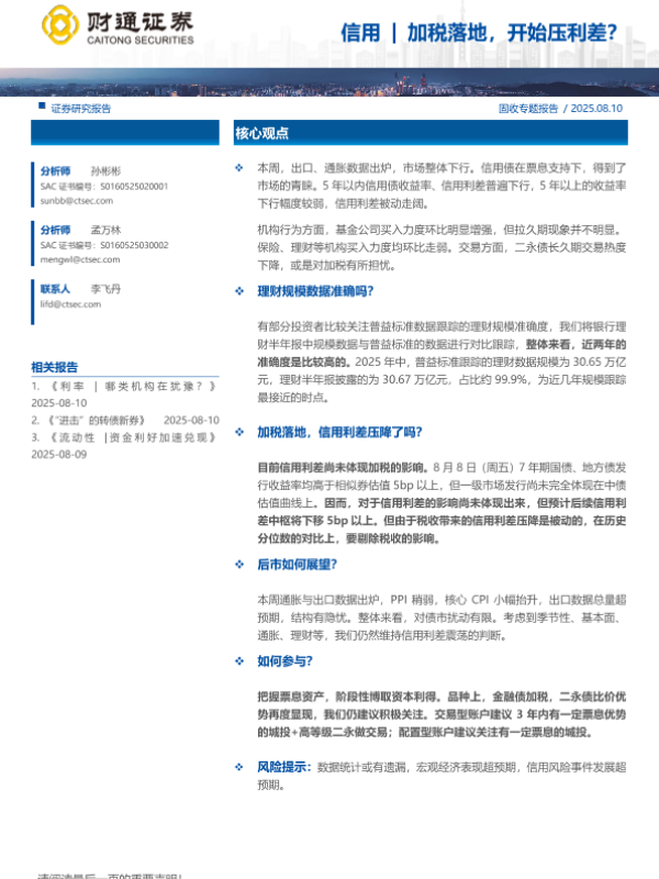 【财通证券】【20250810】信用加税落地,开始压利差?-28页 证券期货研究报告