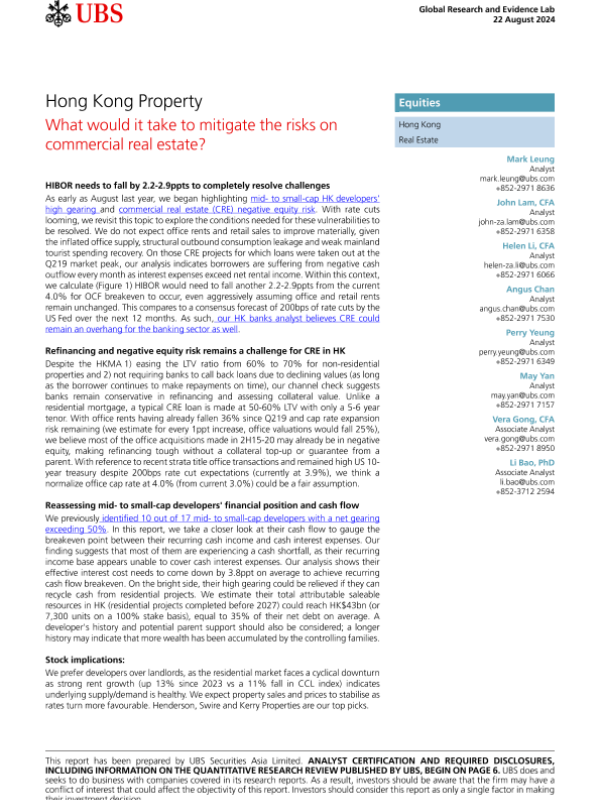 【UBS Securities Asia Limited】【20240822】香港房地产:需要什么来缓解商业地产的风险-16页 行业研究