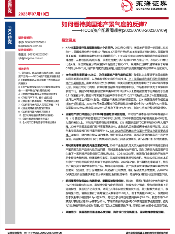 【东海证券】【20230710】FICC&资产配置周观察:如何看待美国地产景气度的反弹?-20页 行业研究