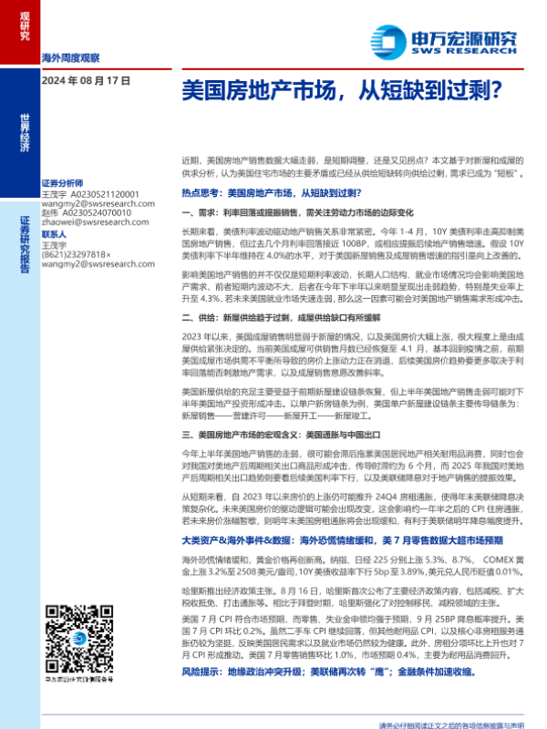 【申万宏源】【20240817】美国房地产市场,从短缺到过剩-23页 行业研究