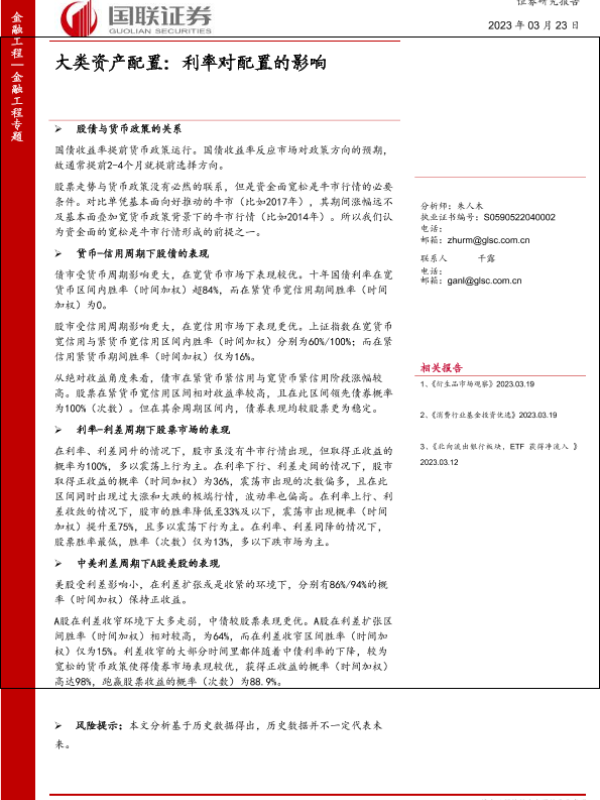 【国联证券】【20230323】大类资产配置:利率对配置的影响-17页 行业研究