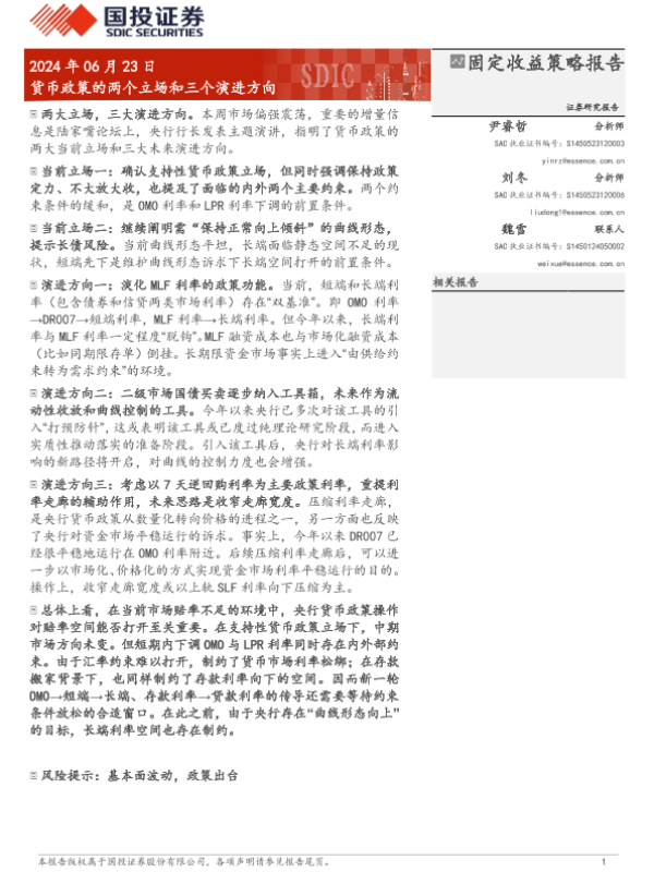 【国投证券】【20240623】固定收益策略报告:货币政策的两个立场和三个演进方向-10页 行业研究