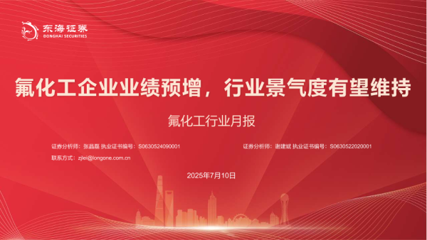 【东海证券】【20250710】氟化工企业业绩预增,行业景气度有望维持-26页 证券期货研究报告