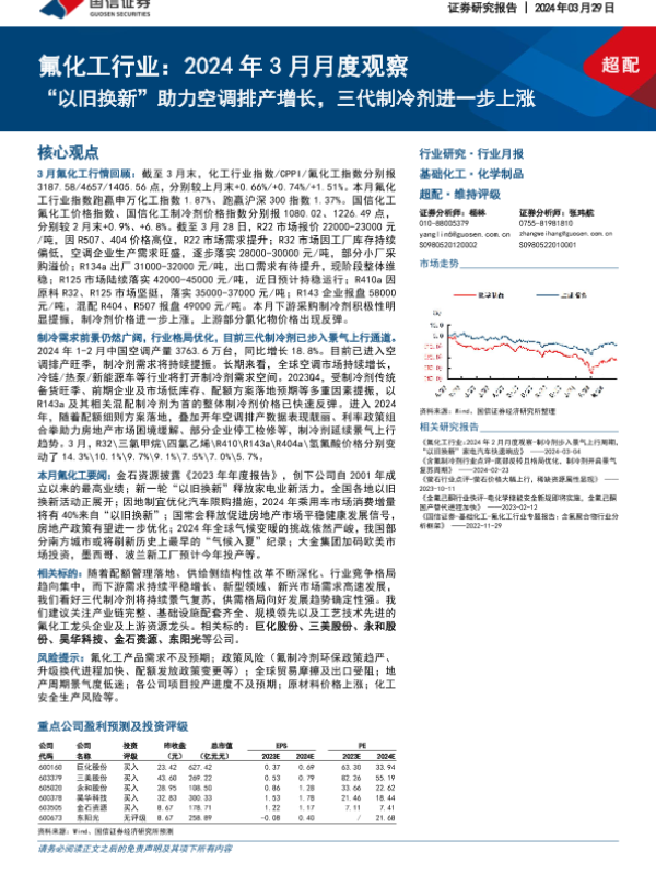 【国信证券】【20240329】2024年3月月度观察:“以旧换新”助力空调排产增长,三代制冷剂进一步上涨-29页 行业研究