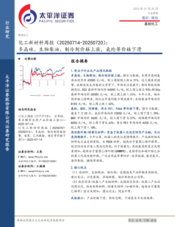 【太平洋证券】【20250720】化工新材料行业周报:多晶硅、生物柴油、制冷剂价格上涨,氨纶等价格下滑-22页 行业研究