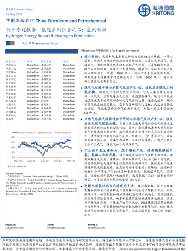 【海通国际】【20230517】中国石油石化行业专题报告:氢能系列报告之二:氢的制取-44页 行业研究