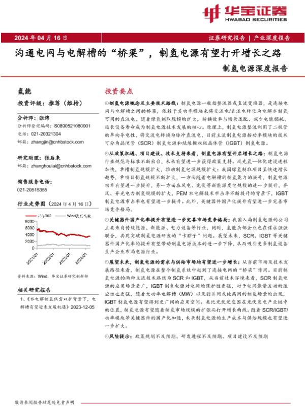 【华宝证券】【20240416】制氢电源深度报告:沟通电网与电解槽的“桥梁”,制氢电源有望打开增长之路-13页 行业研究