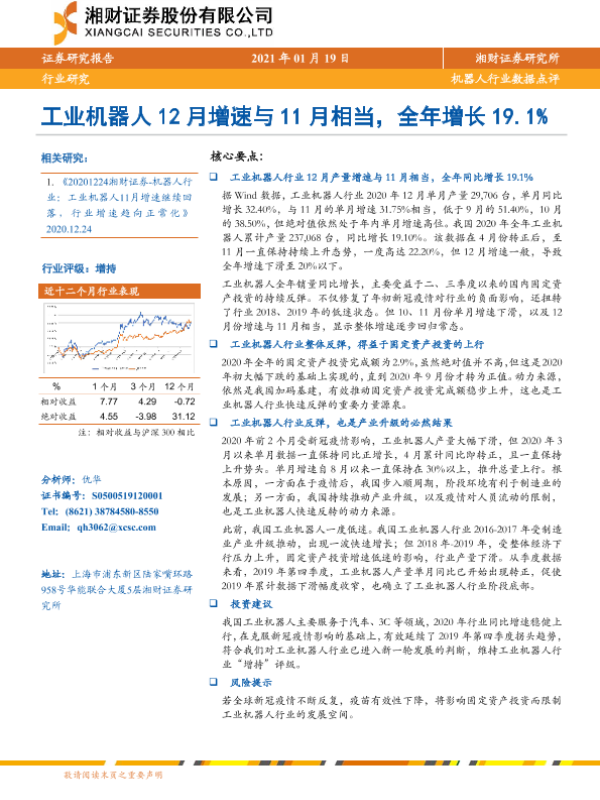 【湘财证券】【20210119】机器人行业数据点评:工业机器人12月增速与11月相当,全年增长19.1%-4页 行业研究