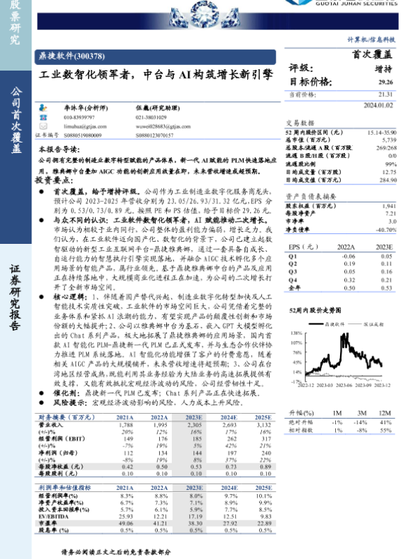 【国泰君安证券】【20240102】鼎捷软件-工业数智化领军者,中台与AI构筑增长新引擎-25页 行业研究