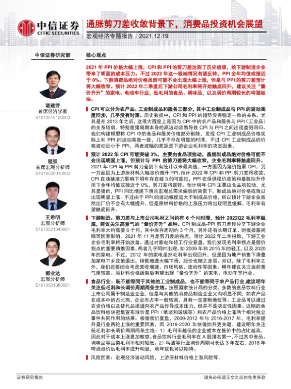 【中信证券】【20211219】宏观经济专题报告:通胀剪刀差收敛背景下,消费品投资机会展望-19页 行业研究