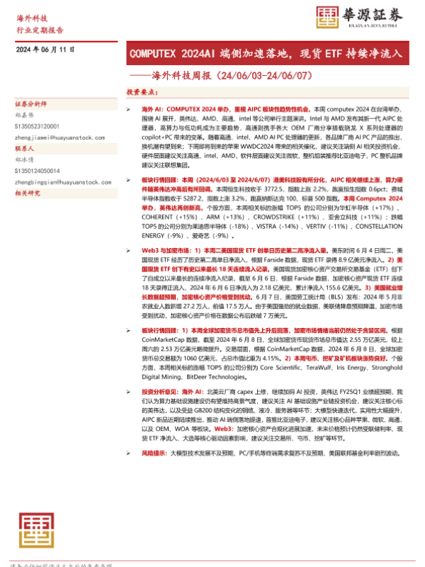 【华源证券】【20240611】海外科技周报:COMPUTEX 2024AI端侧加速落地,现货ETF持续净流入-12页 行业研究