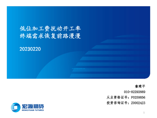 【宏源期货】【20230220】低位加工费扰动开工率,终端需求恢复前路漫漫-27页 行业研究