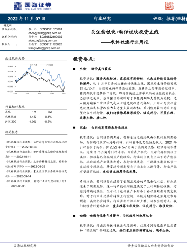 【国海证券】【20221107】农林牧渔行业周报:关注禽板块+动保板块投资主线-19页 行业研究