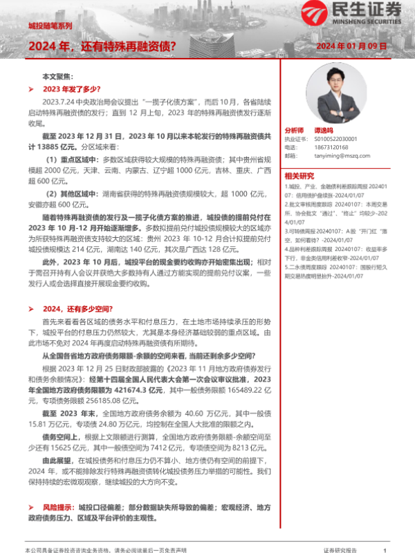 【民生证券】【20240109】城投随笔系列:2024年,还有特殊再融资债?-12页 行业研究