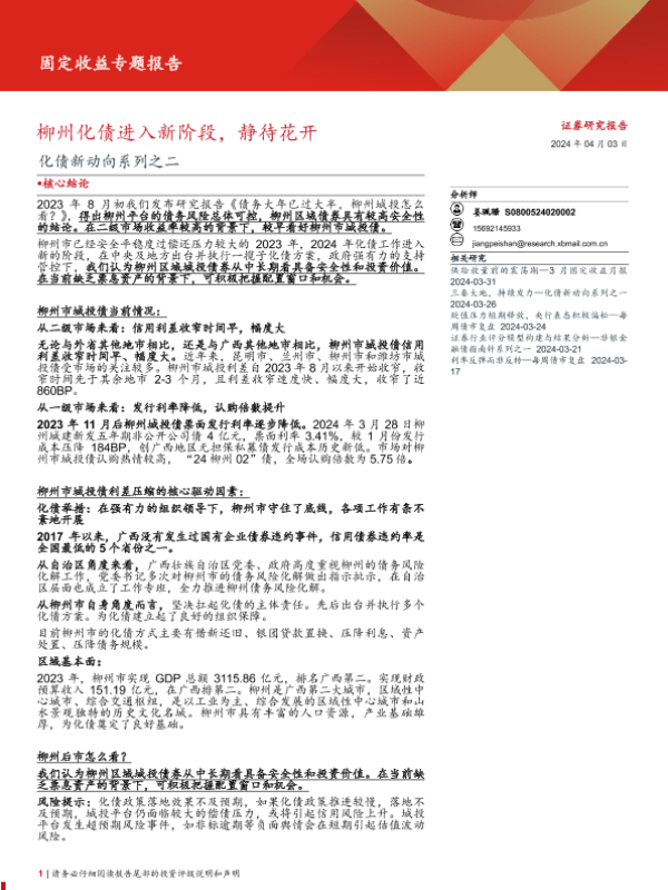 【西部证券】【20240403】化债新动向系列之二:柳州化债进入新阶段,静待花开-11页 行业研究