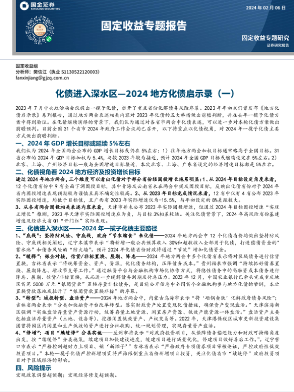 【国金证券】【20240206】固定收益专题报告:2024地方化债启示录(一)-化债进入深水区-16页 行业研究