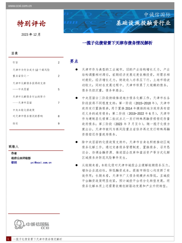 【中诚信国际】【202312】一揽子化债背景下天津市债务情况解析-10页 行业研究