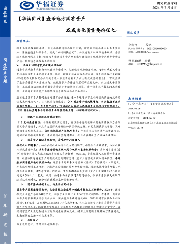 【华福证券】【20240704】盘活地方国有资产,或成为化债重要路径之一-12页 行业研究