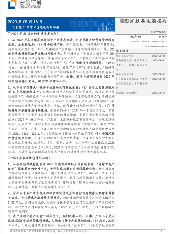 【安信证券】【20230816】一文看懂31省市化债进展与新举措-15页 行业研究