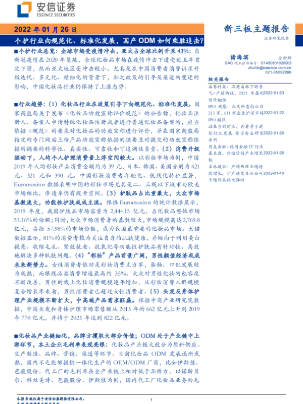 【安信证券】【20220126】新三板主题报告:个护行业向规范化、标准化发展,国产ODM如何乘胜追击?-37页 行业研究