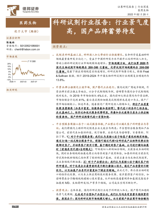 【德邦证券】【20220220】科研试剂行业报告:行业景气度高,国产品牌蓄势待发-49页 行业研究