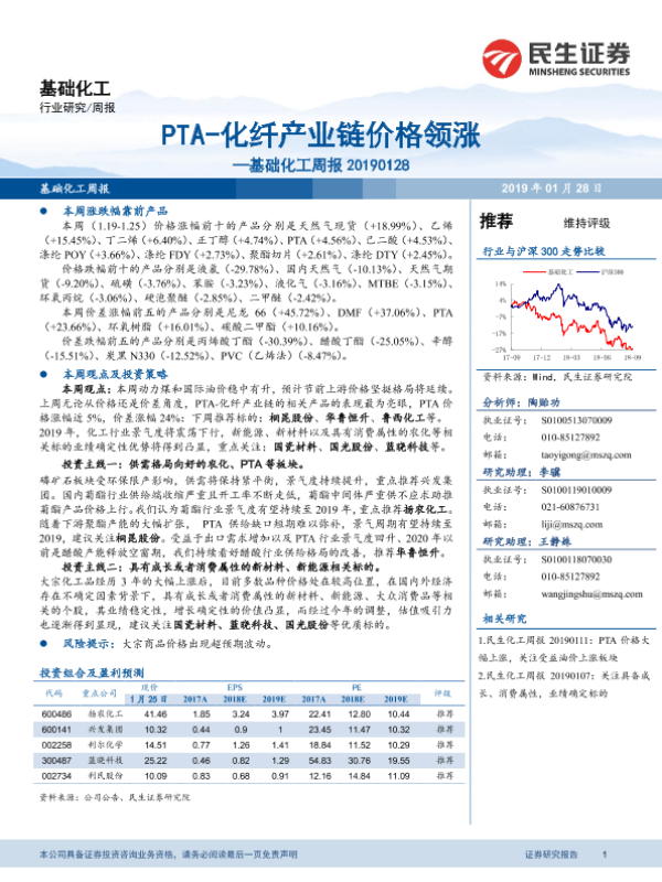 【民生证券】【20190128】基础化工周报:PTA-化纤产业链价格领涨-30页 行业研究