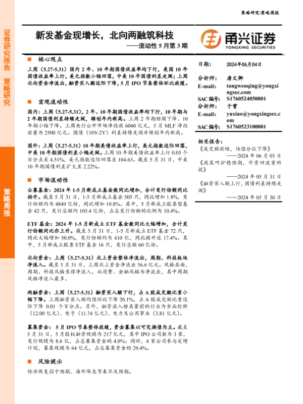 【甬兴证券】【20240604】流动性5月第3期:新发基金现增长,北向两融筑科技-11页 行业研究