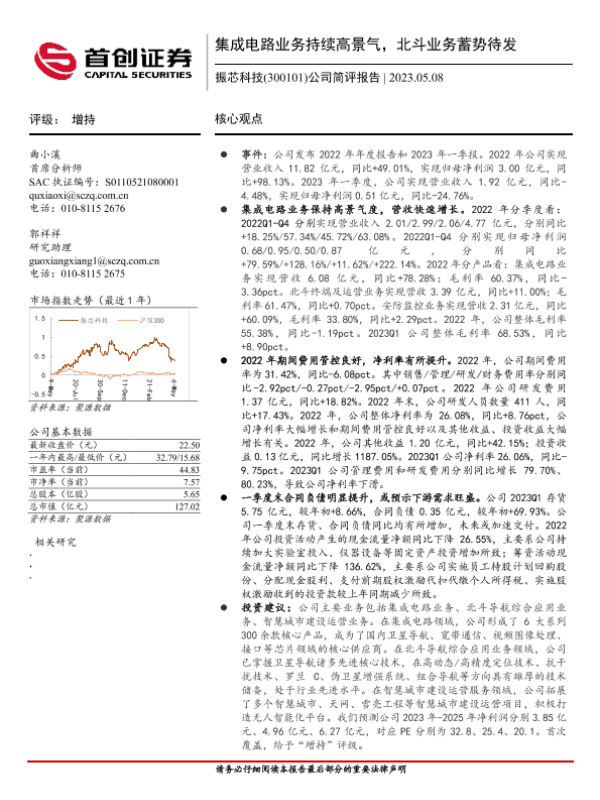 【首创证券】【20230508】振芯科技(300101)公司简评报告 集成电路业务持续高景气,北斗业务蓄势待发-4页 行业研究
