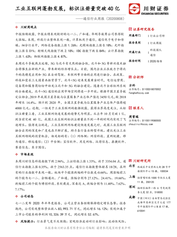 【川财证券】【20200808】通信行业周报:工业互联网蓬勃发展,标识注册量突破40亿-9页 行业研究