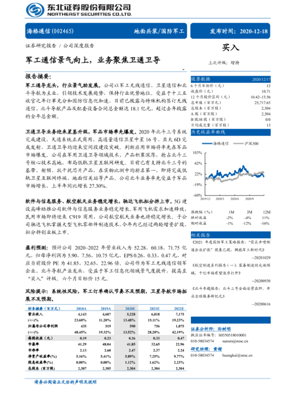 【东北证券】【20201218】军工通信景气向上,业务聚焦卫通卫导-42页 行业研究