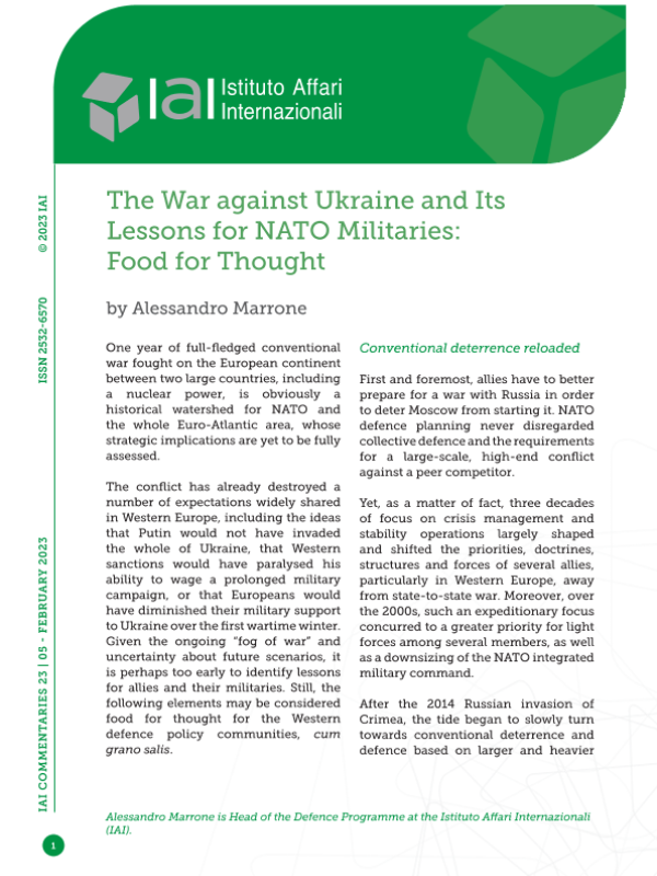 【国际事务研究院(Istituto Affari Internazionali】【20230205】对乌克兰的战争及其对北约军事人员的启示:思考的食粮-7页 行业研究