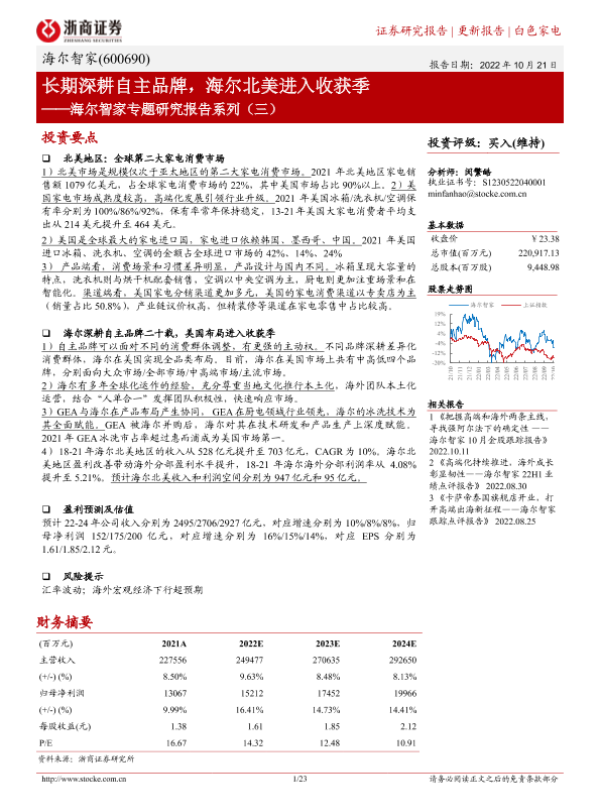 【浙商证券】【20221021】长期深耕自主品牌,海尔北美进入收获季-23页 行业研究
