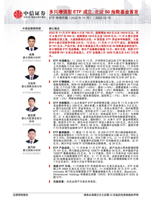 【中信证券】【20221215】ETF市场月报(2022年11月):多只增强型ETF成立,北证50指数基金首发-24页 行业研究