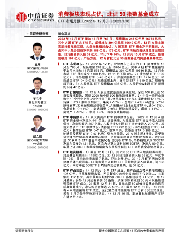 【中信证券】【20230118】ETF市场月报(2022年12月):消费板块表现占优,北证50指数基金成立-19页 行业研究