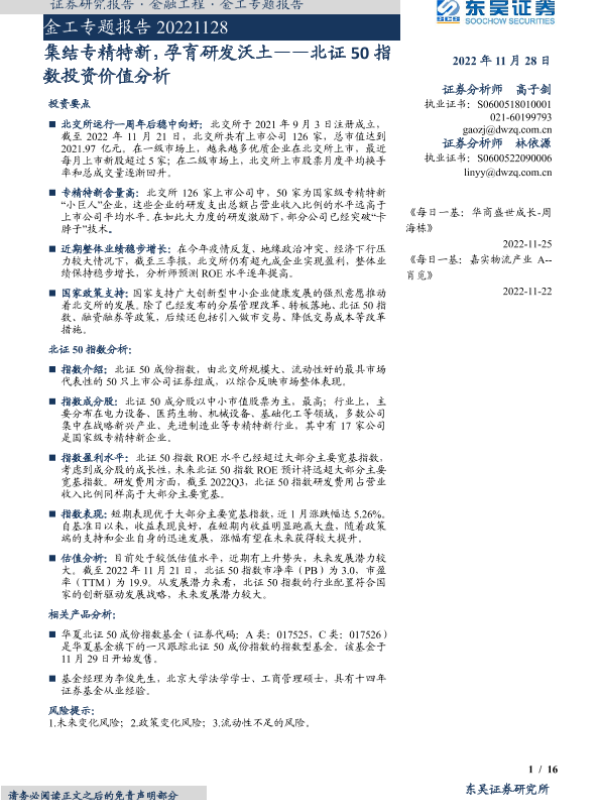 【东吴证券】【20221128】北证50指数投资价值分析:集结专精特新,孕育研发沃土-16页 行业研究