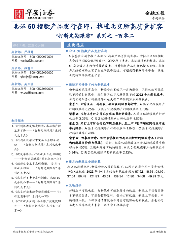 【华安证券】【20221128】“打新定期跟踪”系列之一百零二:北证50指数产品发行在即,推进北交所高质量扩容-22页 行业研究