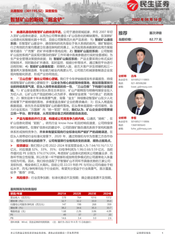 【海通证券】【20220817】北路智控深度:智能煤矿征途万里,北路奋楫扬帆启航-41页 证券期货研究报告