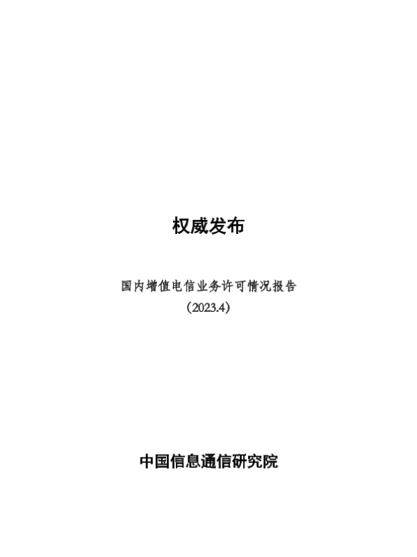 【中国信息通信研究院】【20230401】国内增值电信业务许可情况报告(2023.4)-5页 行业研究