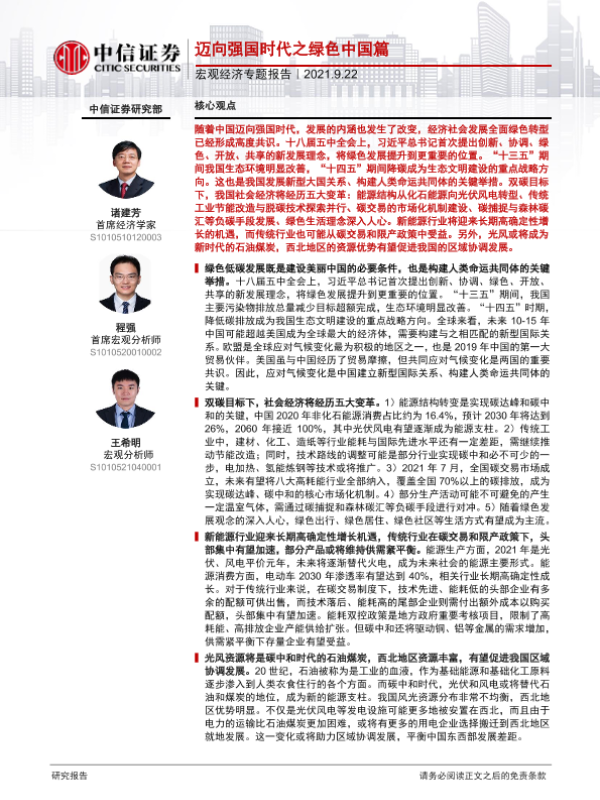 【中信证券】【20210922】宏观经济专题报告:迈向强国时代之绿色中国篇-22页 行业研究