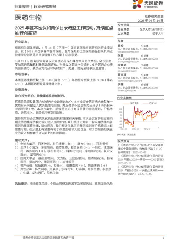 【天风证券】【20250614】2025年基本医保和商保目录调整工作启动_持续重点推荐创新药-2页 行业研究