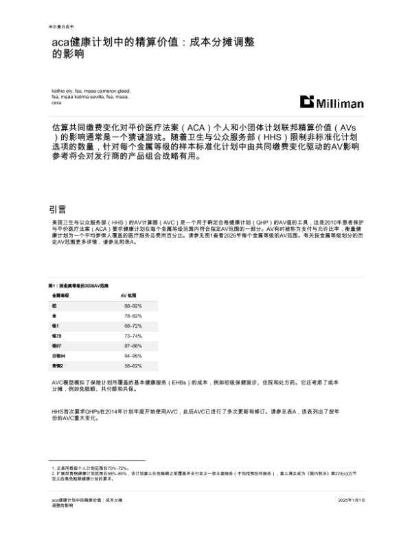 【Milliman】【2025】ACA健康计划中的精算价值 成本分摊调整的影响-18页 白皮书