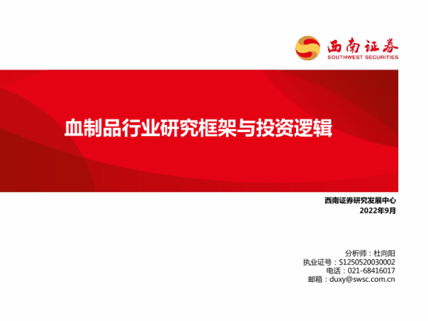【西南证券】【20220919】血制品行业研究框架与投资逻辑-70页 行业研究
