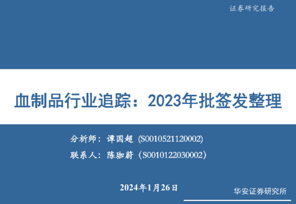 【华安证券】【20240126】血制品行业追踪:2023年批签发整理-17页 行业研究