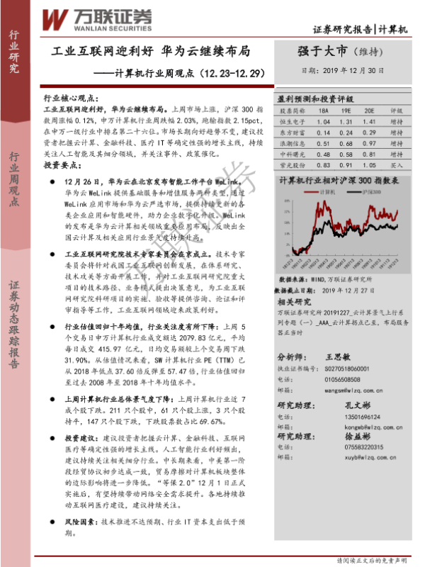 【万联证券】【20191230】计算机行业周观点:工业互联网迎利好 华为云继续布局-12页 行业研究