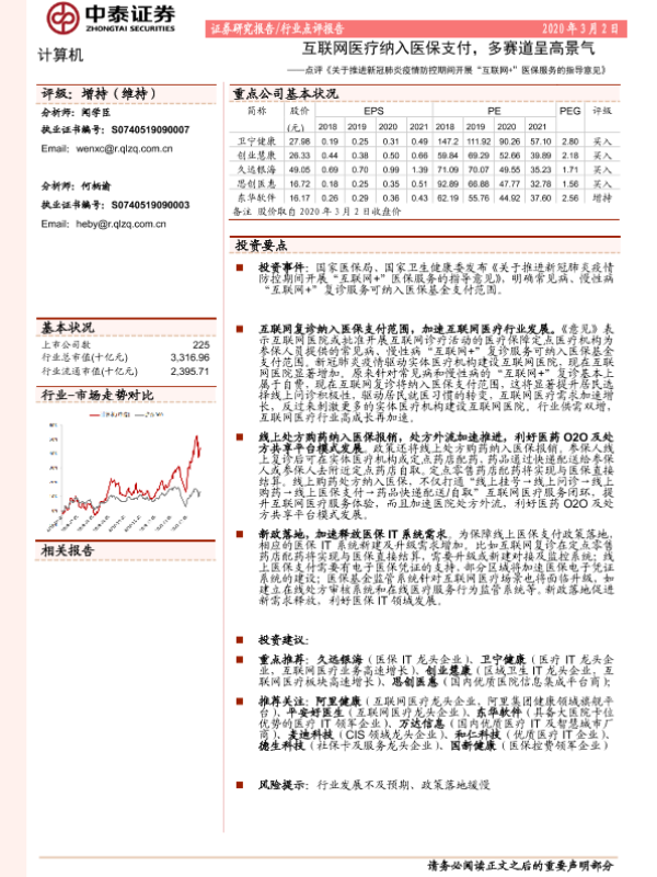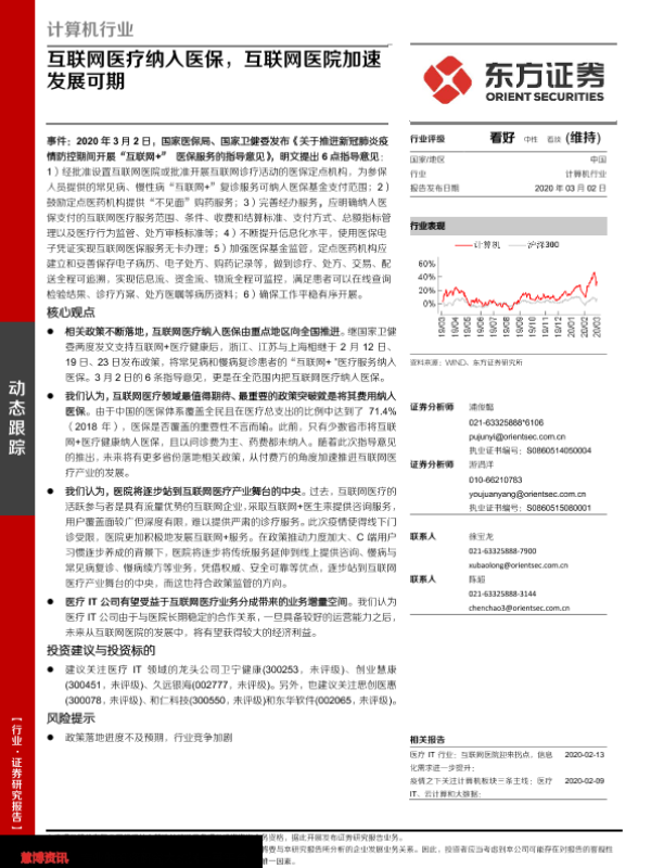 【东方证券】【20200302】计算机行业:互联网医疗纳入医保,互联网医院加速发展可期-4页 行业研究