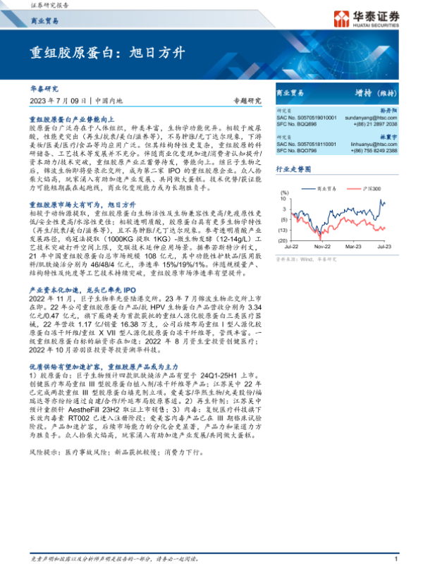 【华泰证券】【20230709】商业贸易行业专题研究:重组胶原蛋白,旭日方升-29页 行业研究