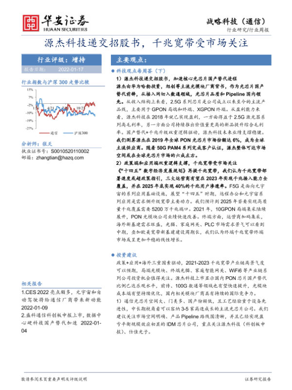 【华安证券】【20220117】20220117-华安证券-通信行业周报:源杰科技递交招股书,千兆宽带受市场关注-17页 行业研究